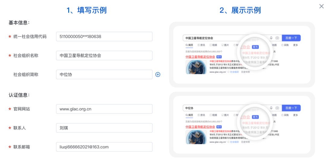 民政部门登记的社会组织,可通过“全国社会组织官网保护申请平台”申请百度官网公益认证,每家社会组织可申报一个网址。申请通过后,用户在百度搜索社会组织时,百度将优先展示经过认证的官网或相关信息,并且对搜索结果标注官方认证标识。