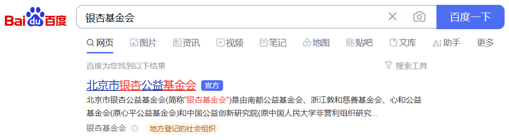 获得官网公益认证后,搜索结果会标记“官方”并被优先展示。