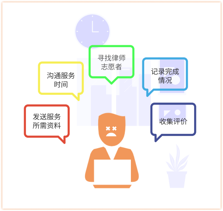 当一个公益项目服务的范围和数量达到一定规模、且服务有多步流程时,项目管理人员通过人工处理就变得繁琐、容易出错;而被服务方(学校、咨询人员)和提供服务方(律师志愿者)也会觉得操作不便、反馈太慢。