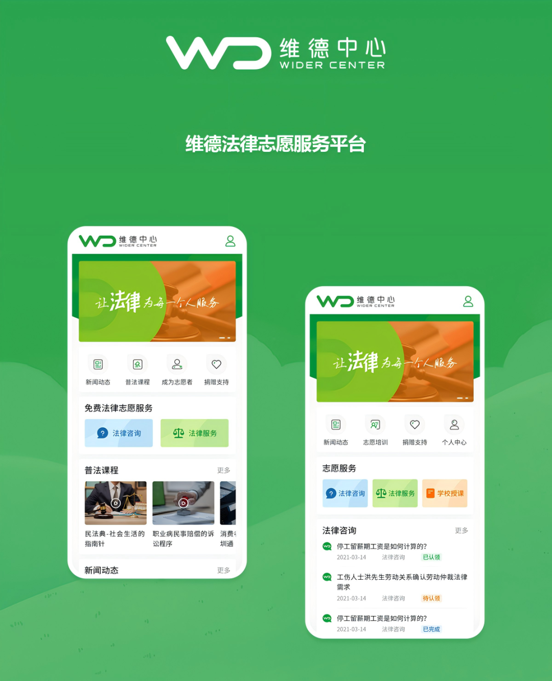 2021年,全思科技受维德法律服务中心的委托,规划实施了链接志愿法律服务的志愿者(律师)和需求方(学校、未成年人、需要法援的个人和组织)的线上平台——“维德法律服务平台”。