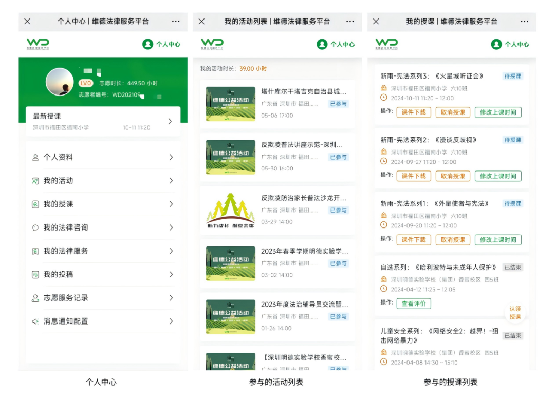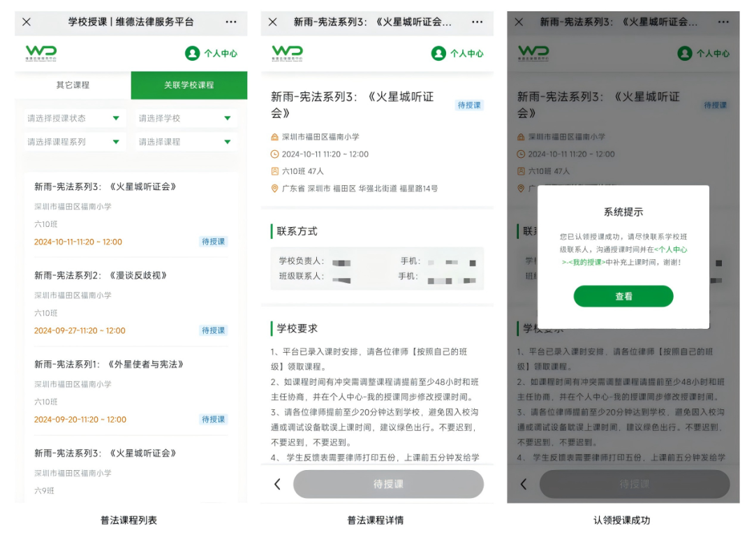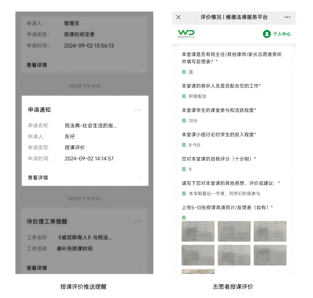 2023年,我们跟维德进行充分沟通之后,了解到这个实际运营中出现的问题后。我们对普法授课的服务流程进行了优化,以解决授课经常变动的问题。