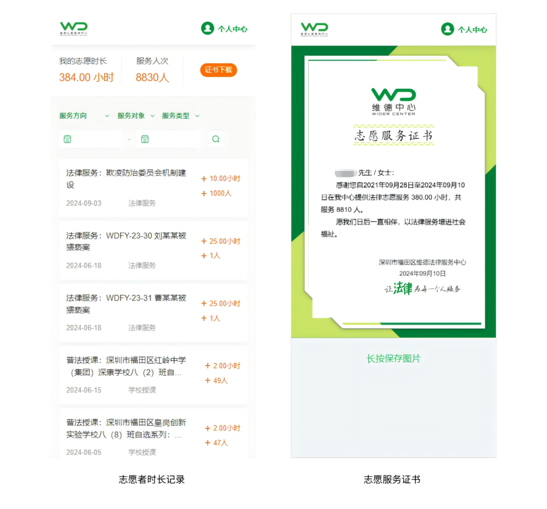 “维德志愿服务平台帮助我们减少了大量的中间沟通工作,以往需要群发和一对一沟通的下载课件、变更授课时间、指引授课流程等工作,现在都可以让志愿者在平台自助操作,方便太多了。
