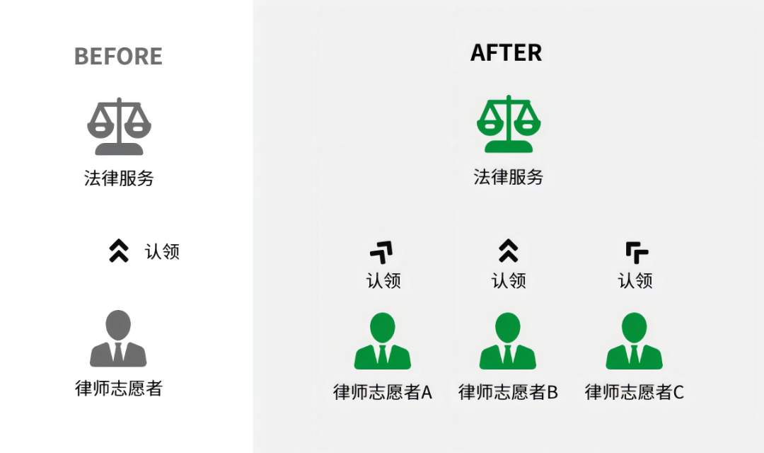 - 实现法律服务多人认领模式,解决实际运营中需多对一服务的问题