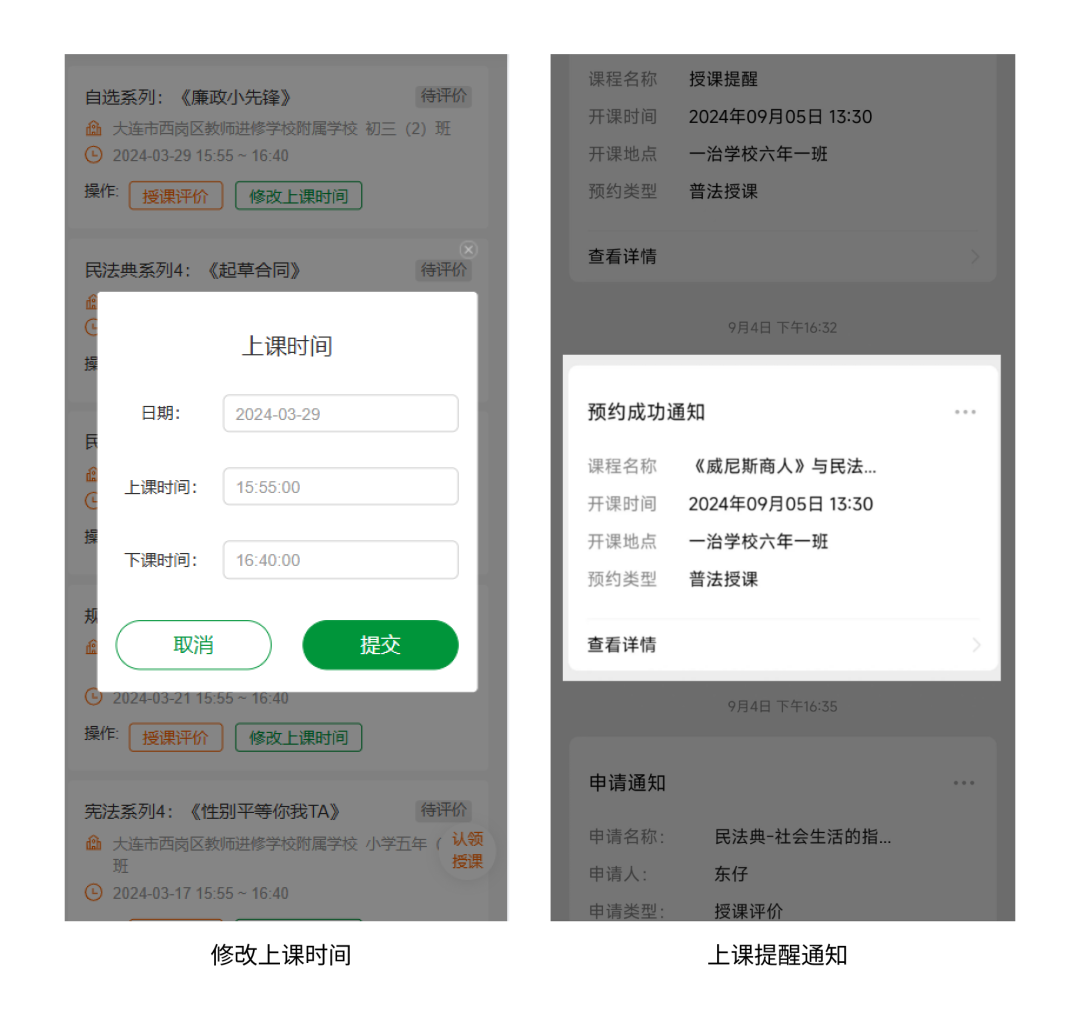 - 优化普法授课的服务流程,解决授课实际经常变动的问题